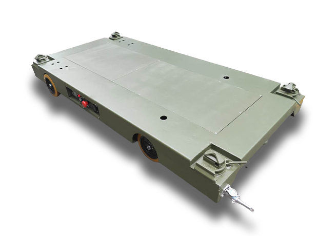 本车设计同时兼备自走牵引两种功能,非自动行走时可牵引拖行;操作简单实用、性能稳定,板面四角设计燕尾式集装箱角件,与上装对接可实现快速装卸,动力源采用电池组配充电器,动力电机采用转向采用液压推杆做转向动力,牵引自走转换系统,配电磁离合器,牵引拖行时电机与车桥分离减,有效减少牵引阻力及电机磨损。按钮遥控器;功能包括启动急停、前进与后退、左右转向。