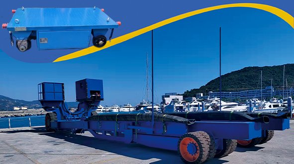 65T重型游艇拖车是由米兰app官方官网-米兰(中国)研发团队研发生产的一款重型游艇拖车。拖车可实现自行走、转向、升降、水平调整以及宽度调节功能。通过自身行走举升等功能,托举起游艇在指定的区域内转运,以及在码头区域将游艇从水面拖至岸上,或从岸上将游艇运送至水面。应用场合:应用于游艇俱乐部、旅游基地、游艇制造厂、船厂等。
